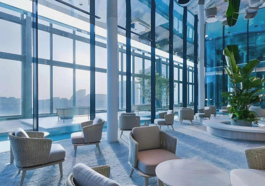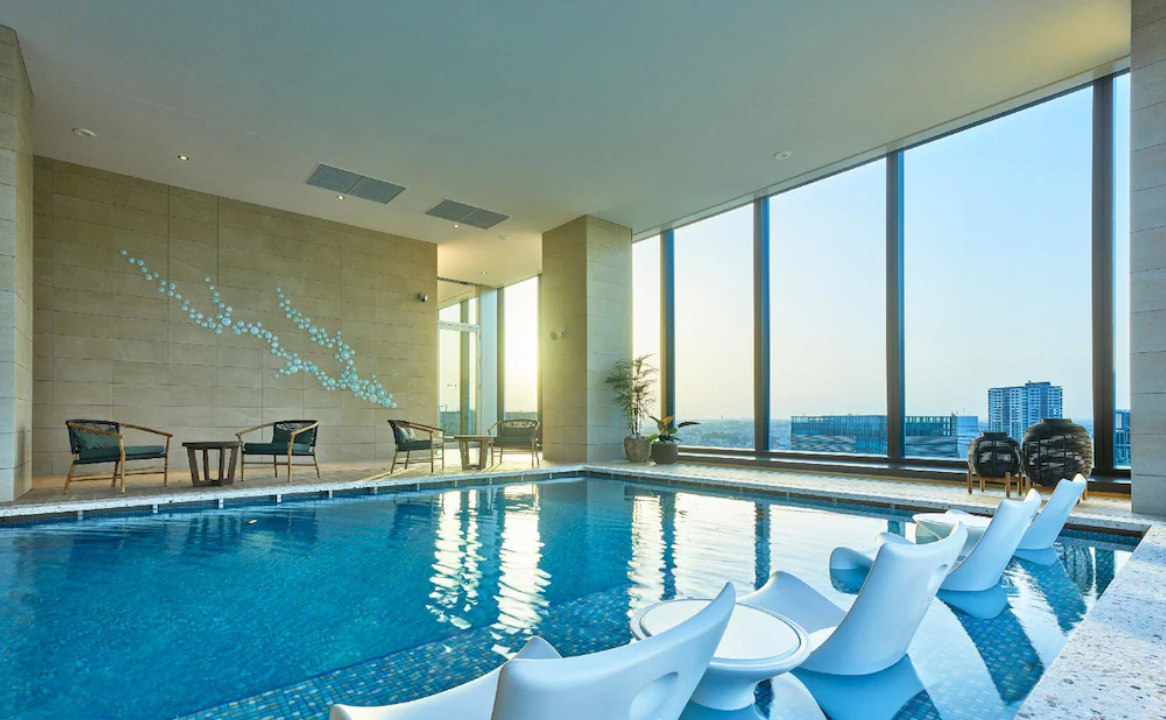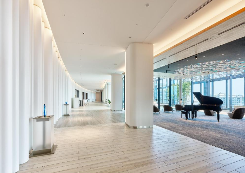호텔 로비 층은 20층에 위치해 조망이 뛰어나고, 로비에는 야마하 그랜드 피아노가 설치되어 자동 연주가 이루어지는 등 고급스럽고 품격 있는 분위기를 자아냅니다. 부대시설도 잘 갖추어져 있어, 수영장, 피트니스 센터, 레스토랑 및 바가 한층에 모여 있어 편리합니다.