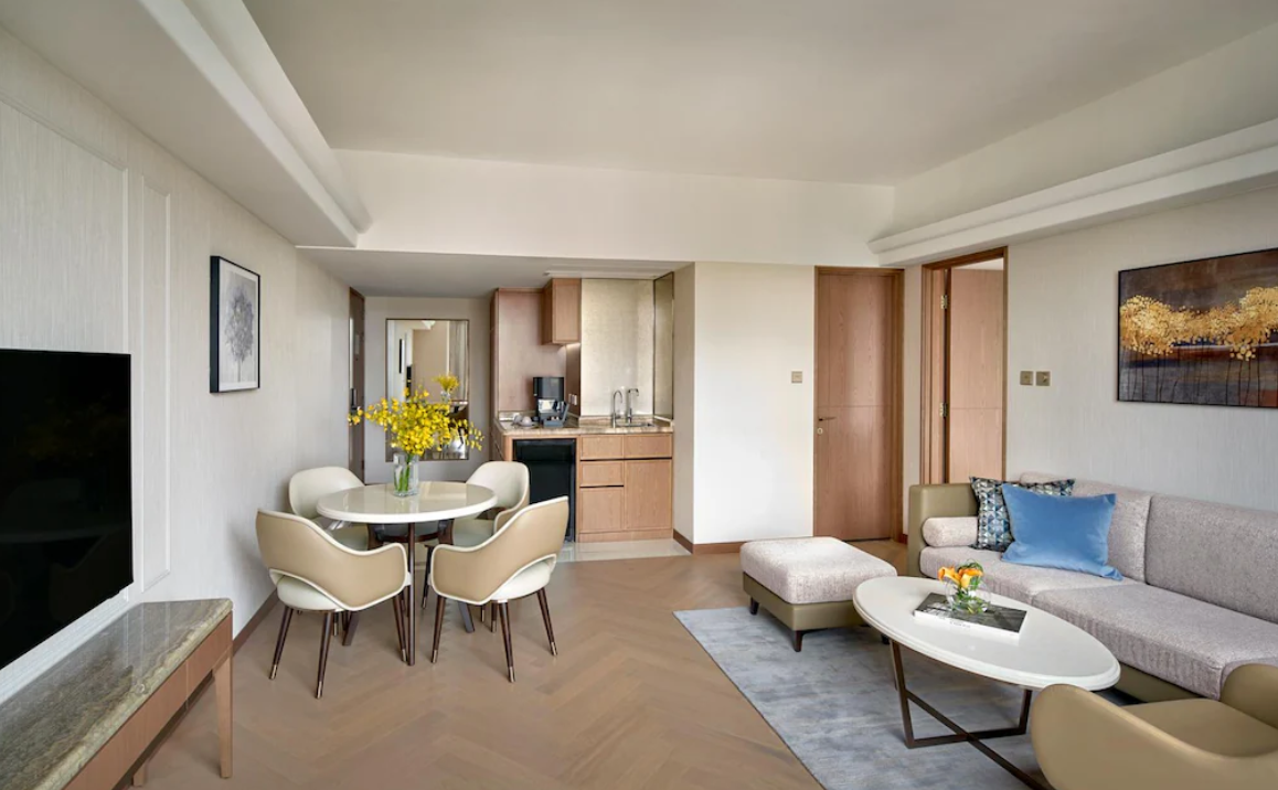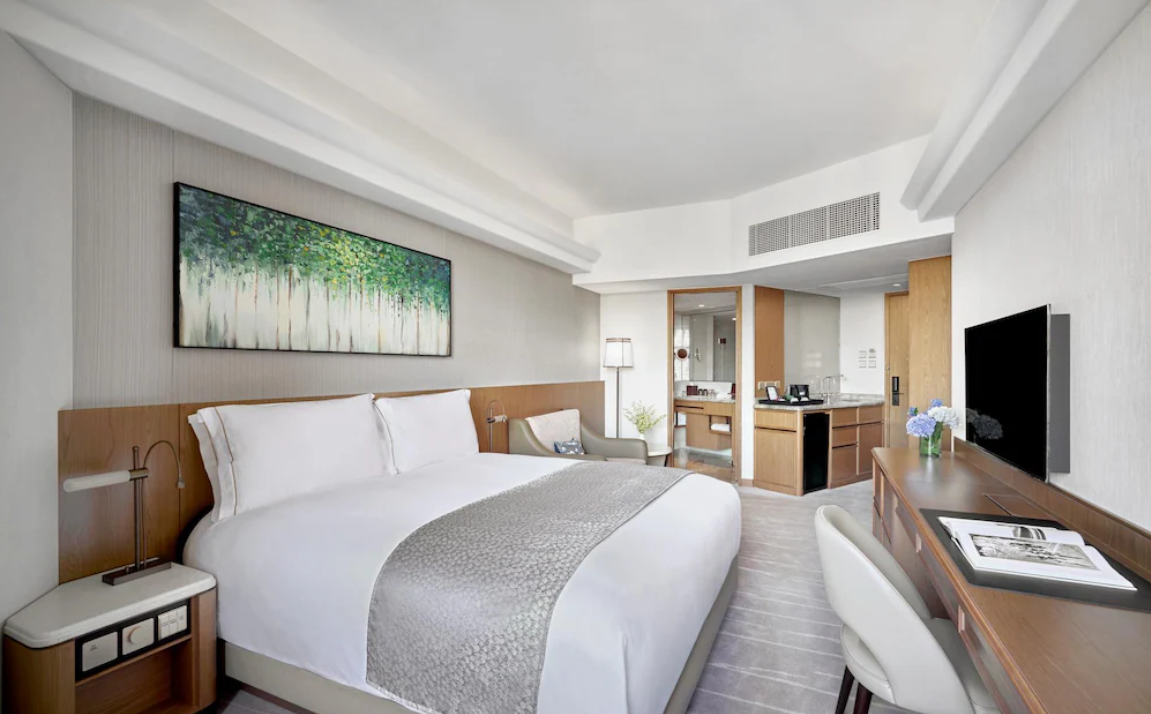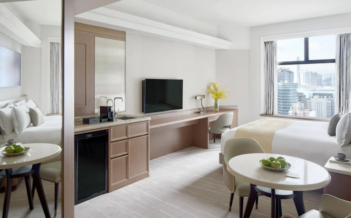 호프웰 호텔은 디럭스룸 기준 약 30㎡, 프리미엄 룸은 38㎡ 이상으로, 홍콩 내 5성급 호텔 중에서도 넓은 객실을 자랑합니다. 가족 단위 투숙객에게도 편안한 여유 공간을 제공하며, 객실 가구와 내부 시설 모두 새로워 깔끔하고 현대적인 느낌을 줍니다.
