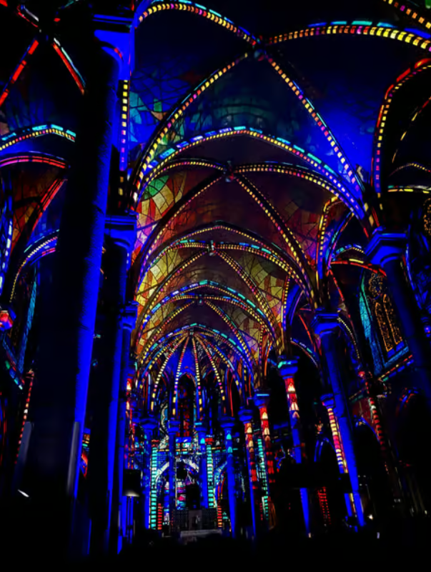 니스 노트르담 대성당에서 열리는 ‘루미니센스’ 사운드와 빛의 쇼는 방문객들에게 마치 전설 속으로 들어가는 듯한 몰입형 경험을 선사합니다. 이 공연은 첨단 프로젝션 매핑 기술과 공간 오디오를 결합하여 성당 내부와 외벽을 아름다운 빛의 캔버스로 변모시킵니다. 8명의 뛰어난 가수들로 구성된 합창단이 들려주는 천상의 목소리는 쇼의 오리지널 사운드트랙을 한층 더 풍부하고 감동적으로 만들어, 역사 깊은 노트르담 성당의 전설과 신비로운 분위기를 생생하게 느낄 수 있게 해줍니다. 이러한 예술적 조합은 단순한 관람을 넘어, 관객이 직접 그 공간 안에서 이야기를 체험하는 듯한 독특한 경험을 제공하는 것이 특징입니다.