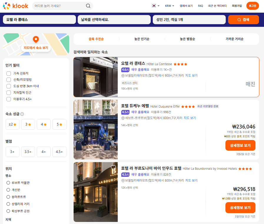 파리 호텔 라 콩테스만의 장점 정리