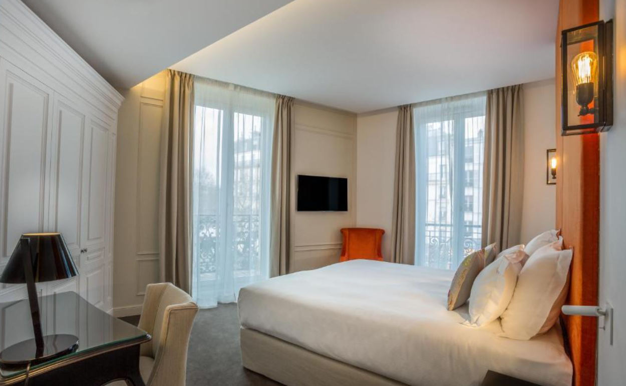 대부분 객실에서는 에펠탑이 빚어내는 황홀한 야경을 바라볼 수 있으며, 일부 객실에는 발코니가 있어 보다 여유로운 시간을 보낼 수 있습니다. 욕실 내에는 동작 감지 야간 조명이 있어 밤에도 편리하고 안전하게 이용할 수 있는 점도 섬세한 배려가 돋보입니다. 호텔 라 콩테스는 고급스러운 인테리어와 함께 현대적인 편의 시설을 충실히 갖추고 있어, 가족 여행객부터 로맨틱한 휴가를 계획하는 커플까지 모두에게 적합한 숙소입니다.