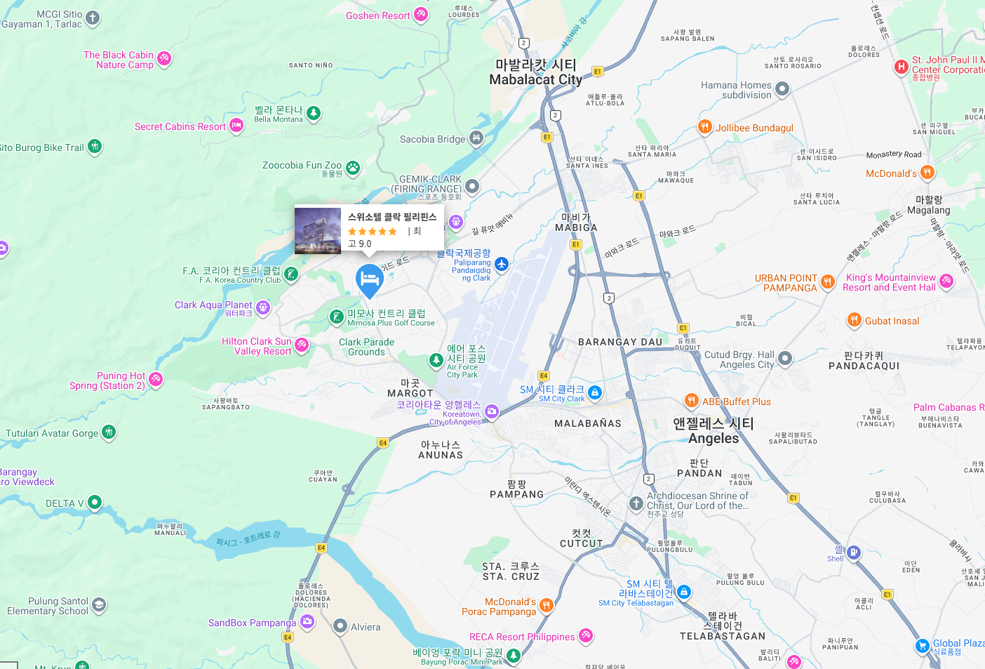쇼핑·식사: SM 시티 클락과 주변 상업지구에서 식사와 쇼핑을 편하게 즐길 수 있어 가족 단위 일정에 편리합니다.