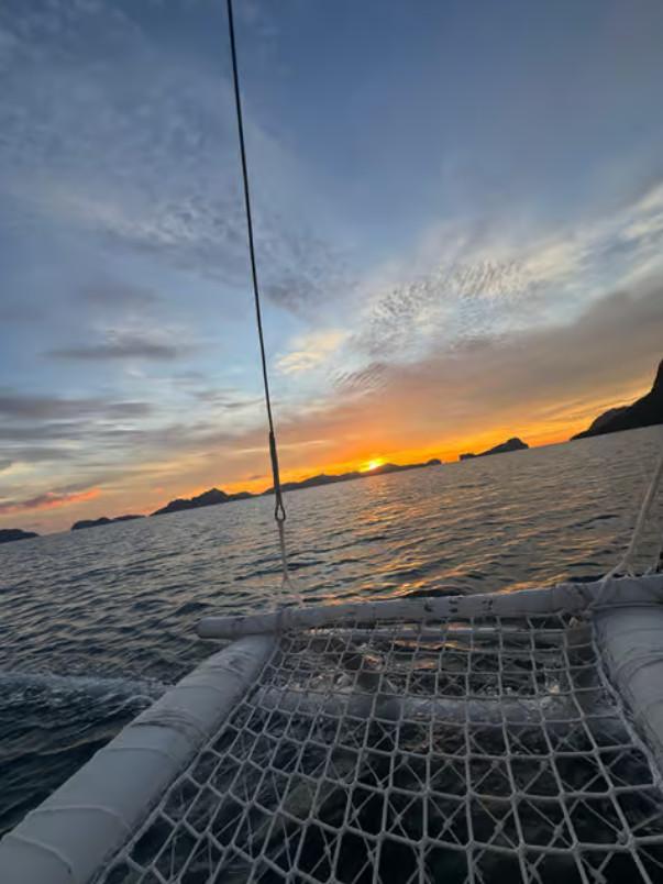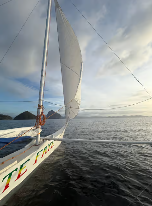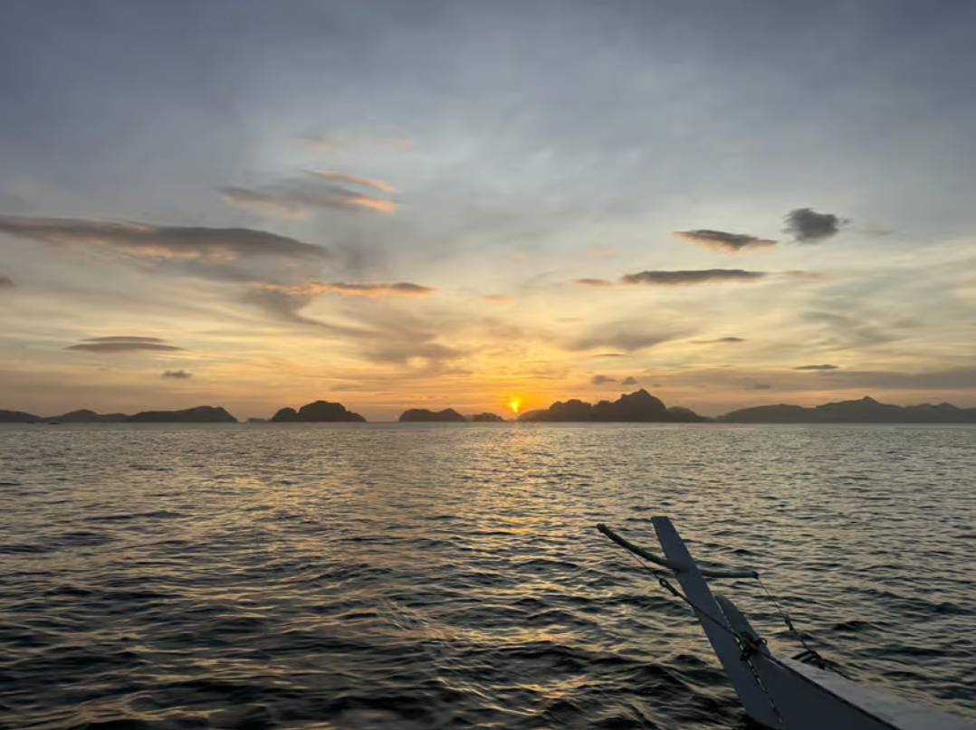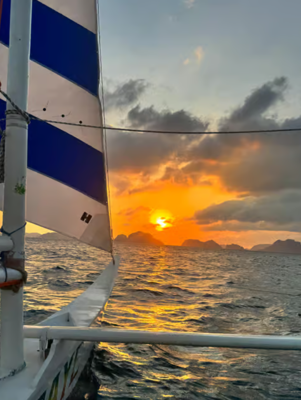 엘니도에서의 프라이빗 파라와 선셋 세일링은 그저 한 번의 액티비티가 아니라 오감으로 남는 기억 한 편을 만드는 경험입니다. 바람에 실려 천천히 미끄러지듯 나아가는 전통 파라(Paraw)의 흰 돛은 해질녘 황금빛 하늘과 어우러져 그림 같은 실루엣을 만들어냅니다. 파도 위에서 들리는 것은 돛이 퍼지는 소리와 잔잔한 물결 소리, 가끔 갈매기 울음뿐이라 도시의 소음은 완전히 잊혀집니다.