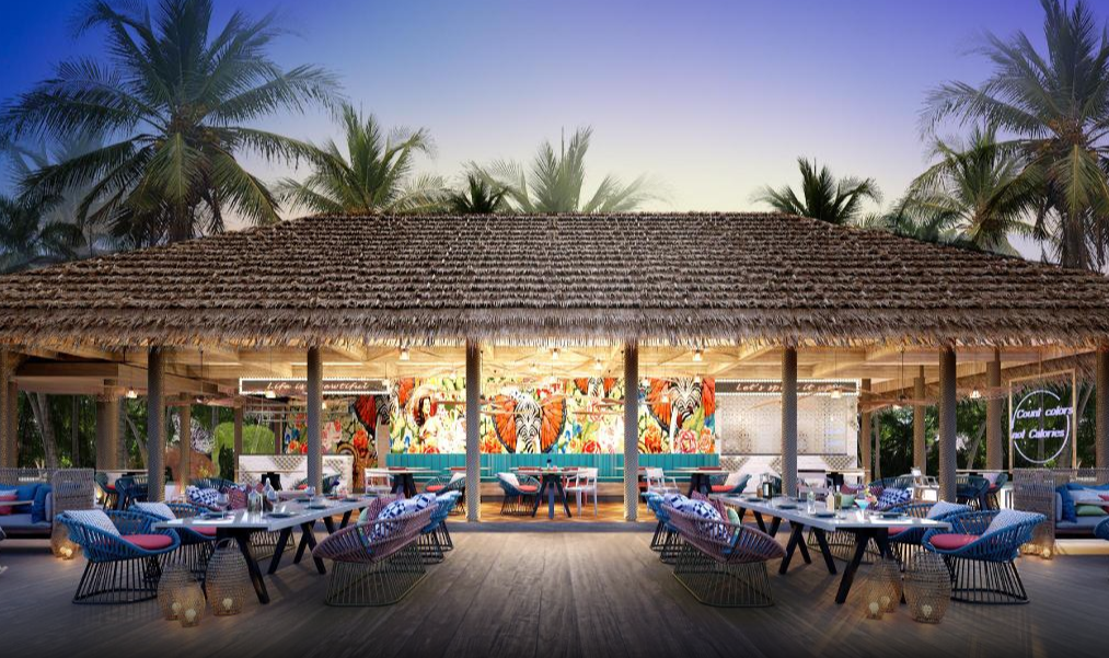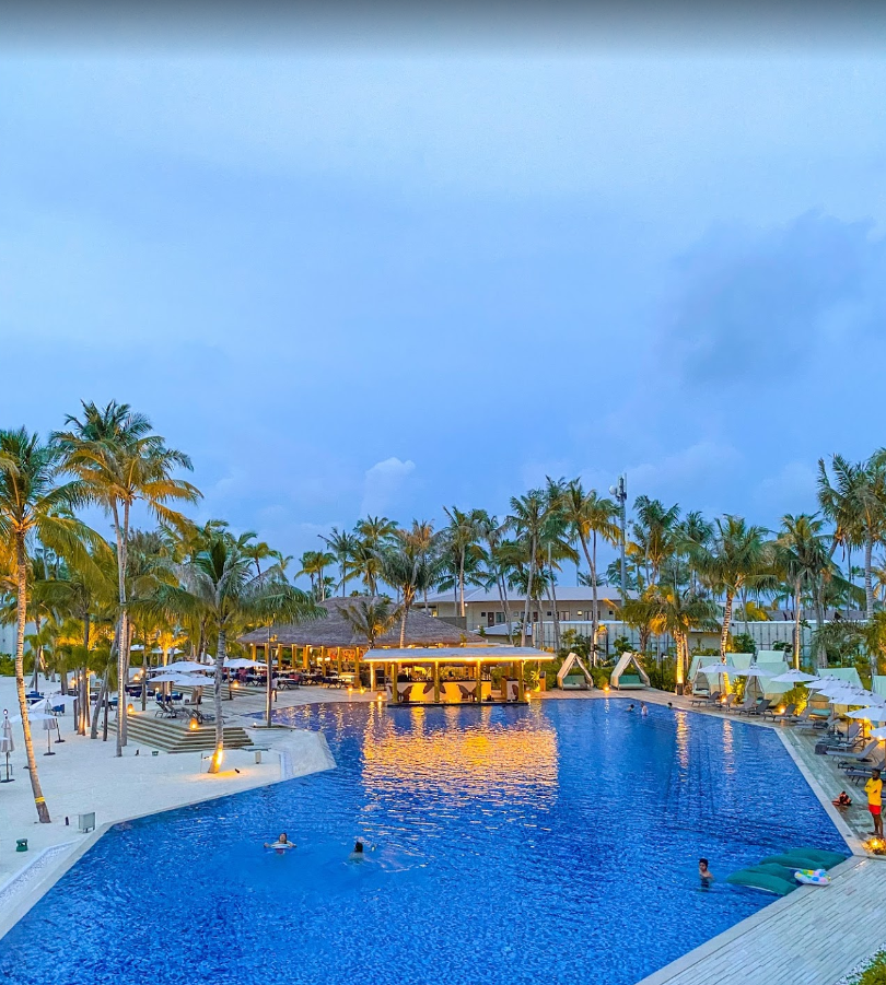 3개의 리조트가 연결되어 있어서 여러컨셉의 느낌을 가질 수 있음. 다만 하드락은 기존 한국인들이 원하는 조용하고 낭만적인 몰디브 느낌과는 조금 다른 축제 분위기의 리조트임.