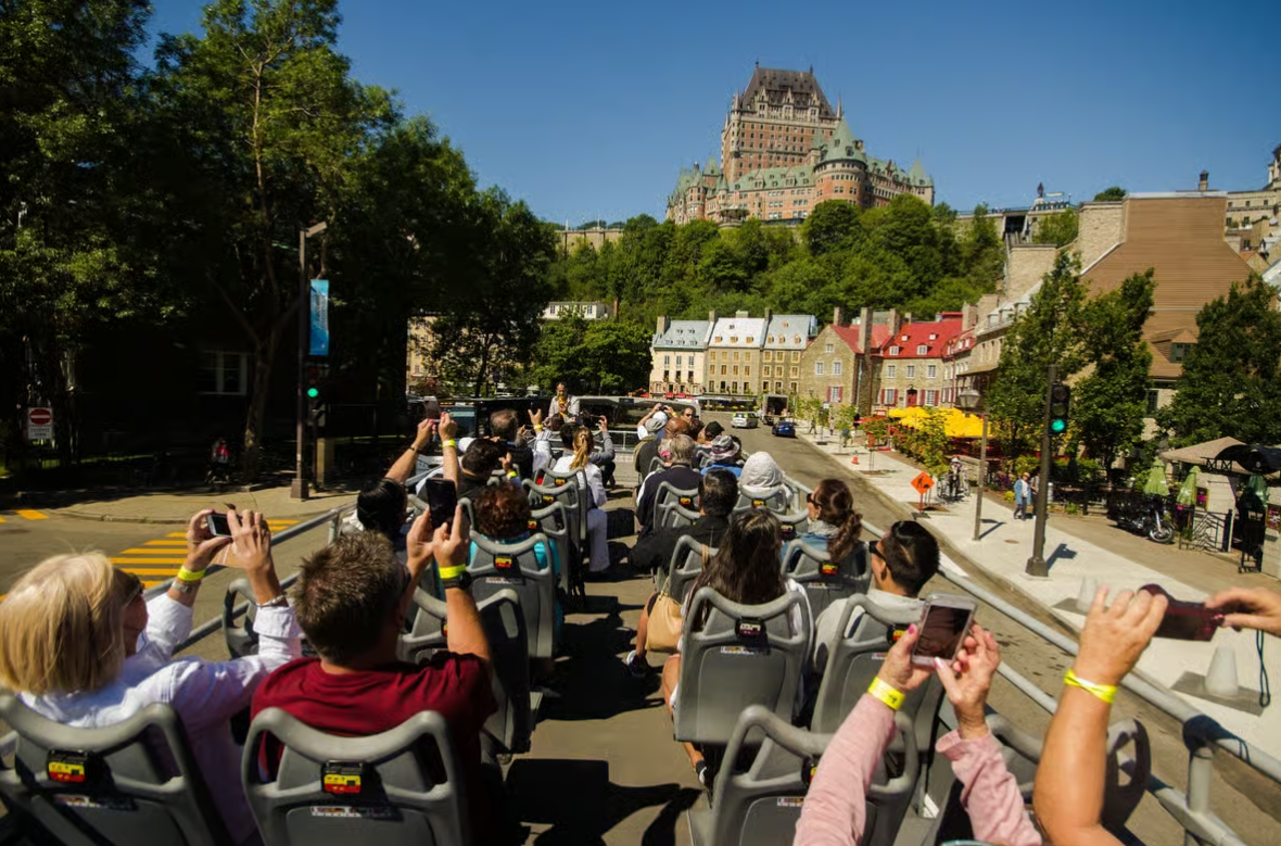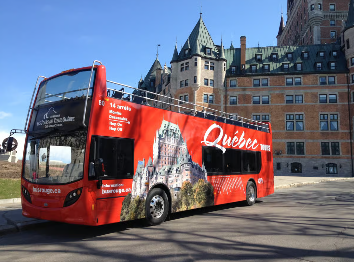 퀘벡시티의 좁은 석조 골목과 붉은 지붕, 세월의 흔적이 묻어나는 성벽을 한눈에 담을 수 있는 가장 편하고 감성적인 방법이 바로 오픈탑 더블데커 홉온홉오프 버스 투어입니다. 버스의 2층 맨 앞자리에 앉아 차갑게 반짝이는 생로렌스 강과 구시가지의 파노라마를 맞이하면, 마치 옛 유럽 소설 속 장면을 그대로 걷는 듯한 기분이 듭니다. 도시의 주요 명소들을 연결하는 루트는 관광 동선이 자연스럽게 짜여 있어 처음 방문하는 사람도 큰 힘들이지 않고 핵심을 빠짐없이 둘러볼 수 있습니다.