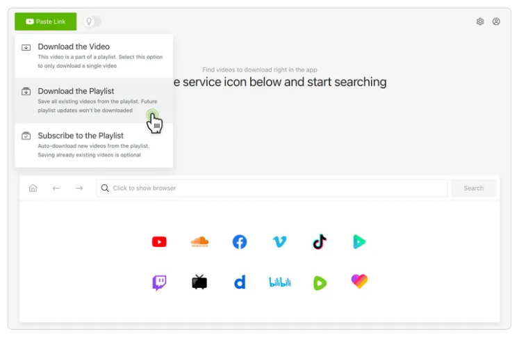 링크 붙여넣기(Paste Link): 프로그램 상단의 ‘Paste Link’ 버튼을 클릭하면 자동으로 링크를 분석합니다.
