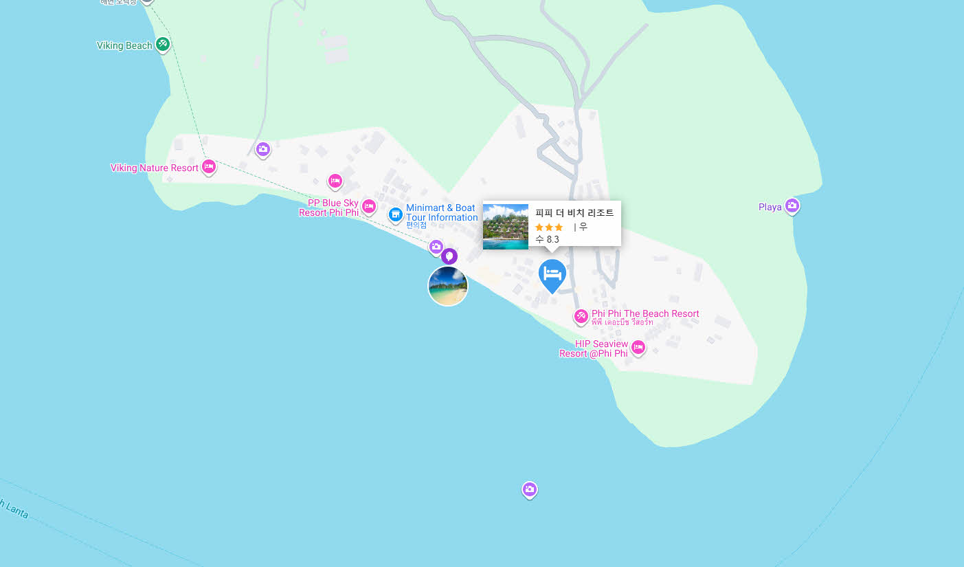 지역 교통 허브(페리·스피드보트): 피피 섬은 본토(푸켓·끄라비 등)에서 배로 이동해야 하기 때문에 페리 터미널과 스피드보트 정차 지점의 위치를 미리 파악하는 것이 중요합니다. 리조트 측에서 페리 픽업·샌딩 서비스를 제공하는지 사전 확인하시면 이동 스트레스를 줄일 수 있습니다.