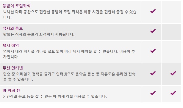 컴포트1 좌석 이용자의 경우 역사에 있는 라운지를 이용할 수 있습니다: