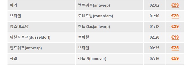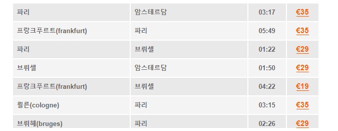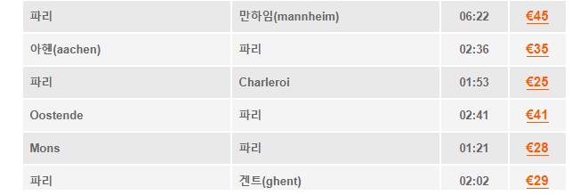 사이트를 보시면 탈리스 열차의 주요 노선 및 저렴한 가격부터