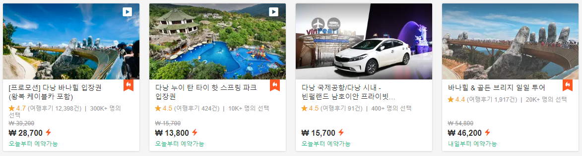 한국분들 바나힐 투어 후기들도 많아 체험내용도 확인할 수도 있고 좋네요