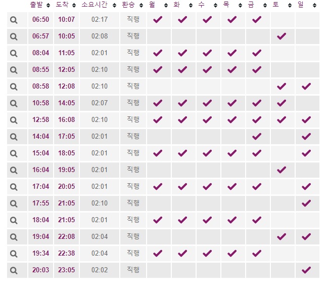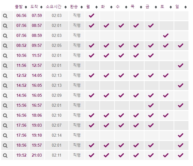 다양한 노선 및 시간을 확인하실 수 있고 티켓 예약 및 좌석 예약도 가능합니다.