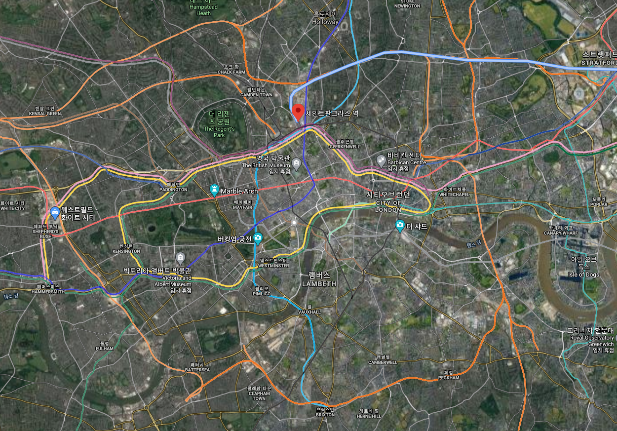 생 팬크라스 역 주변에는 킹스크로스 역과 런던 유스턴 역이 있습니다.