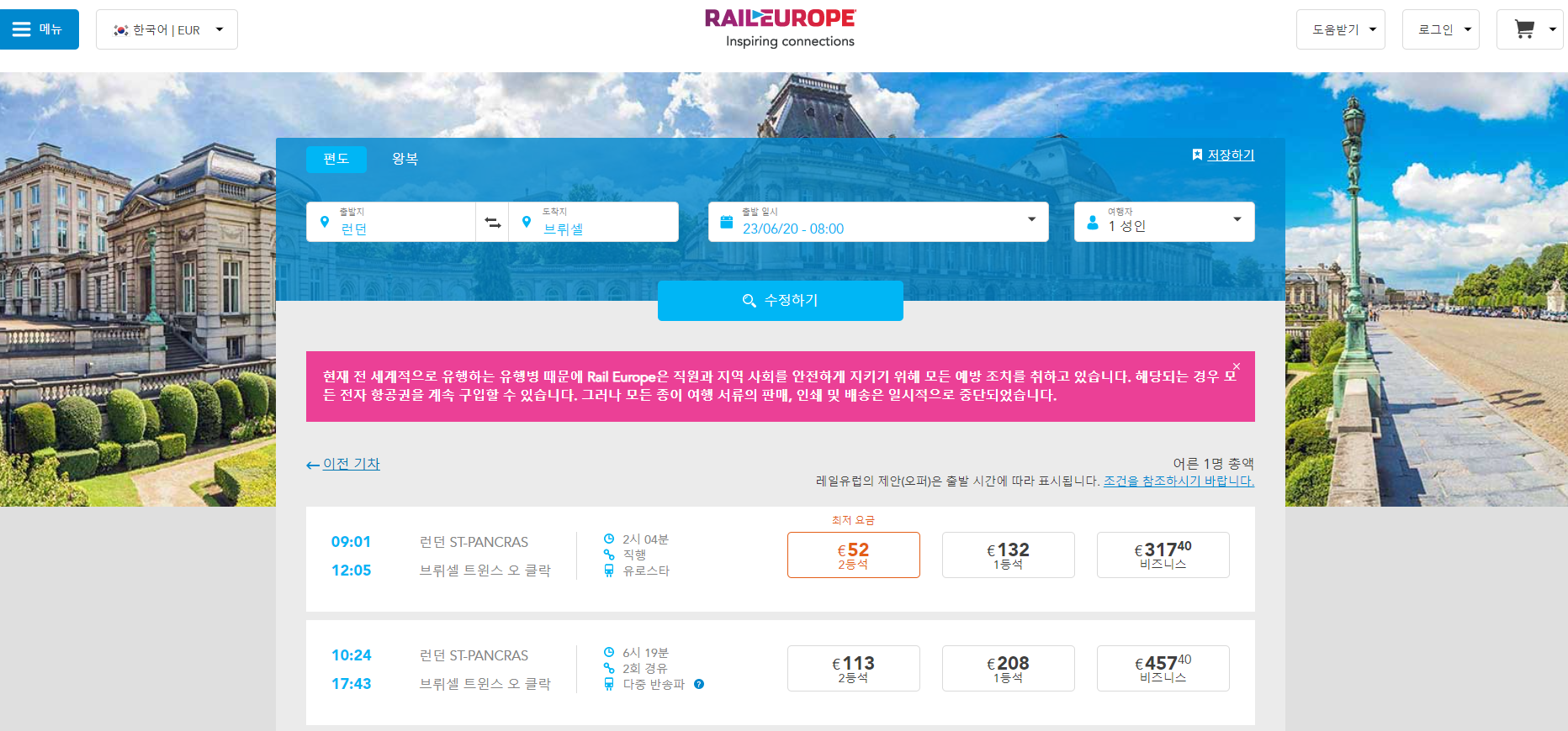런던에서브뤼셀 로 이동하는 유로스타는 레일유럽사이트에서 예약하실 수 있으며,