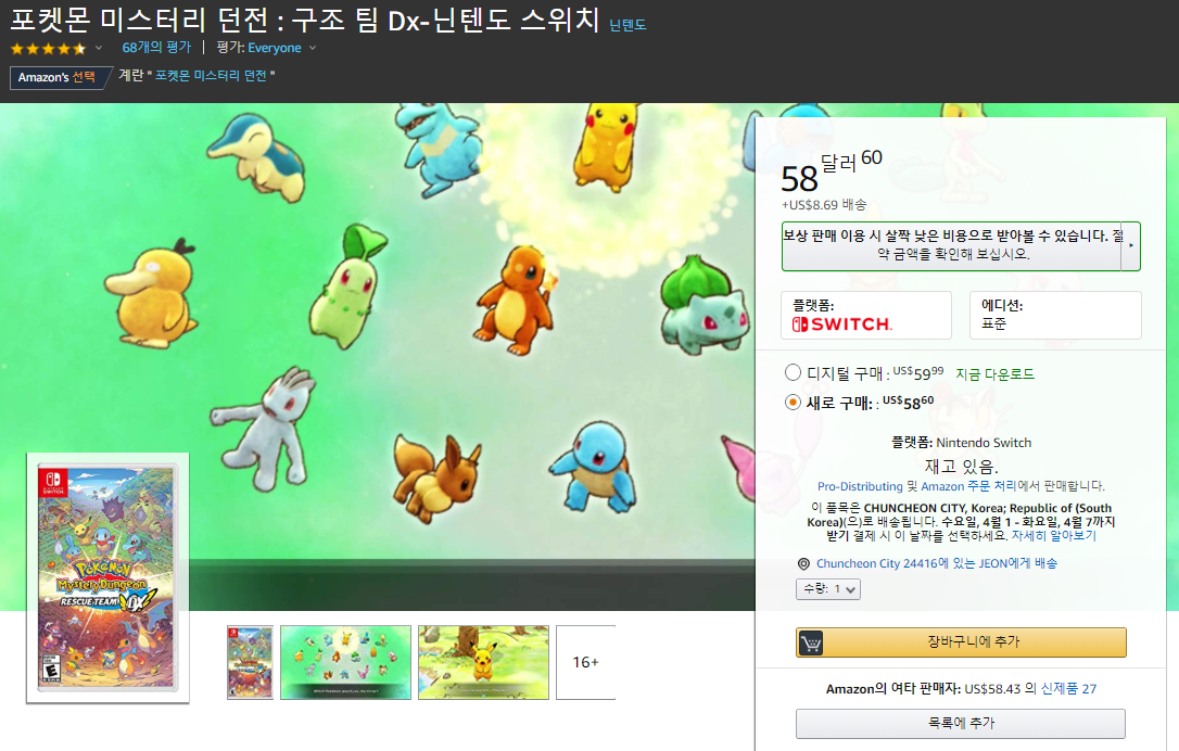 닌텐도스위치게임// 닌텐도(Nintendo Switch ) 포켓몬 게임 포켓몬 미스터리 던전 : 구조 팀 Dx-닌텐도 스위치