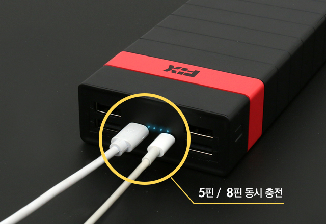 동시에 두개의 충전케이블을 연결하면 기존 2.1의 충전속도에서