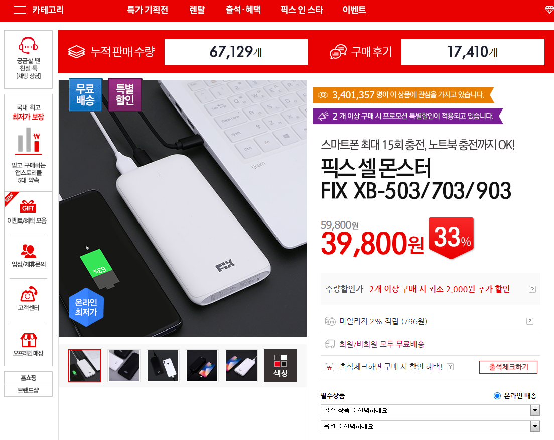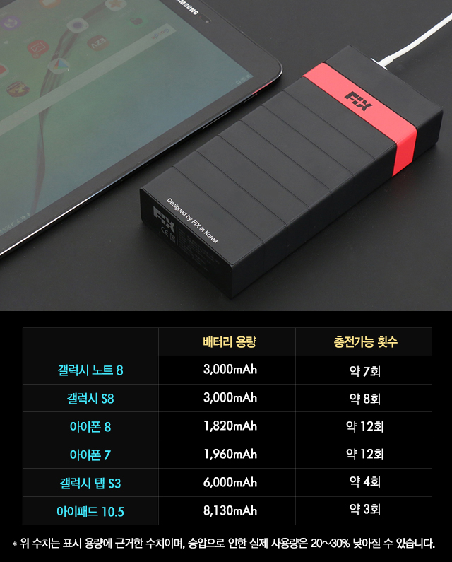 대용량을 자랑하는 픽셀 몬스터 fix xb-902 24000mah 보조배터리는