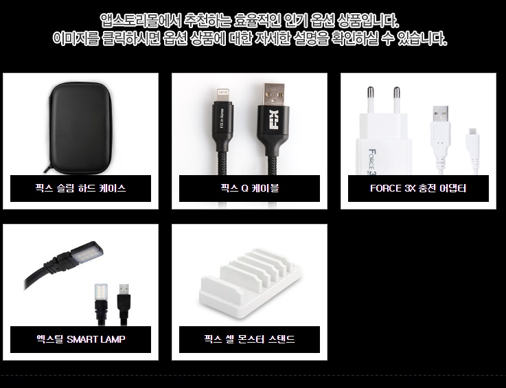 구매하실 때 픽스 케이블, 충전아답터 등 전용 제품 추가로 구매하시면,