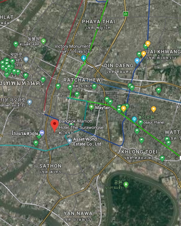 실롬에 있는 본 숙소(방콕 메리어트 호텔 더 수라웡세)는 방콕 및 그 주변을 둘러보기에