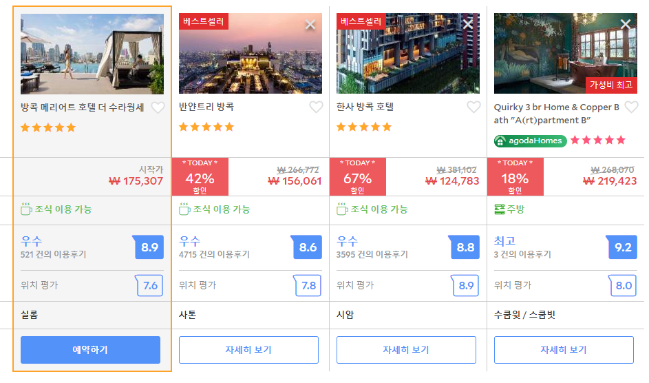 최저 가격대는 아고다에서 할인특가 가격으로 매일매일 변동되며