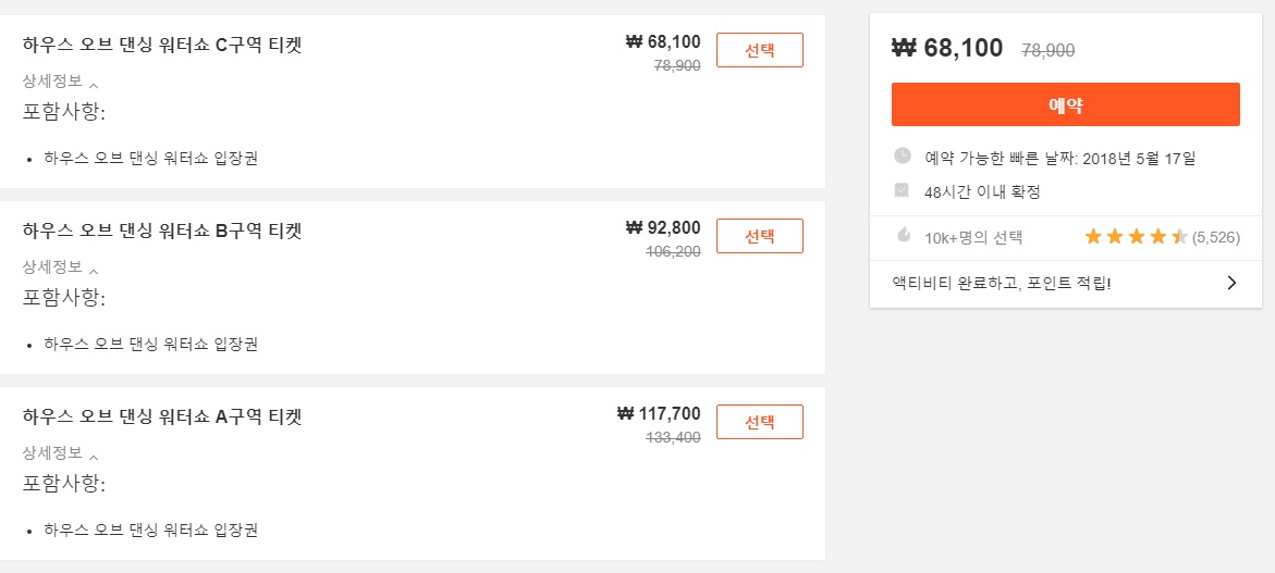 공연 시간: 5:00pm, 8:00pm