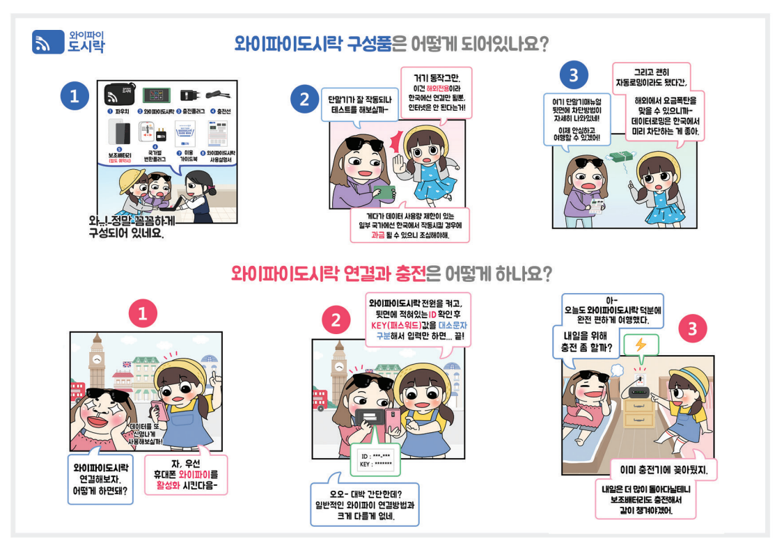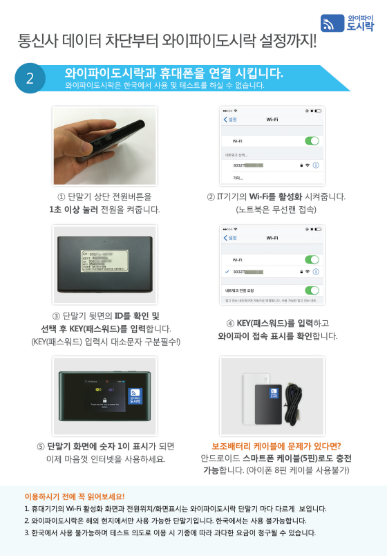 사용법은 그림으로된 설명서도 주시고, 인천공항에서 받을 때 설명도 해주셨는데