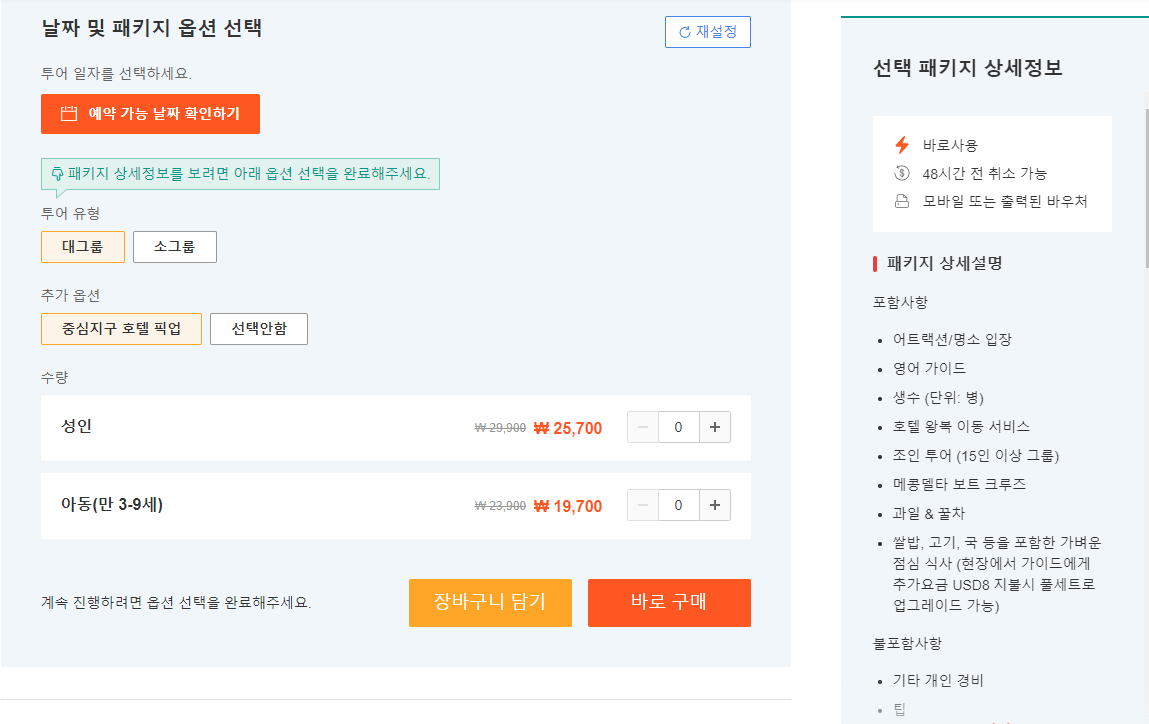 간단한 점심 식사 (추가요금 USD8 지불시 풀세트로 업그레이드 가능)