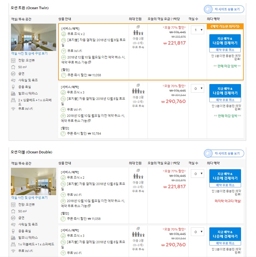 최저 가격대는아고다에서 할인 특가 격으로 매일매일 변동되며