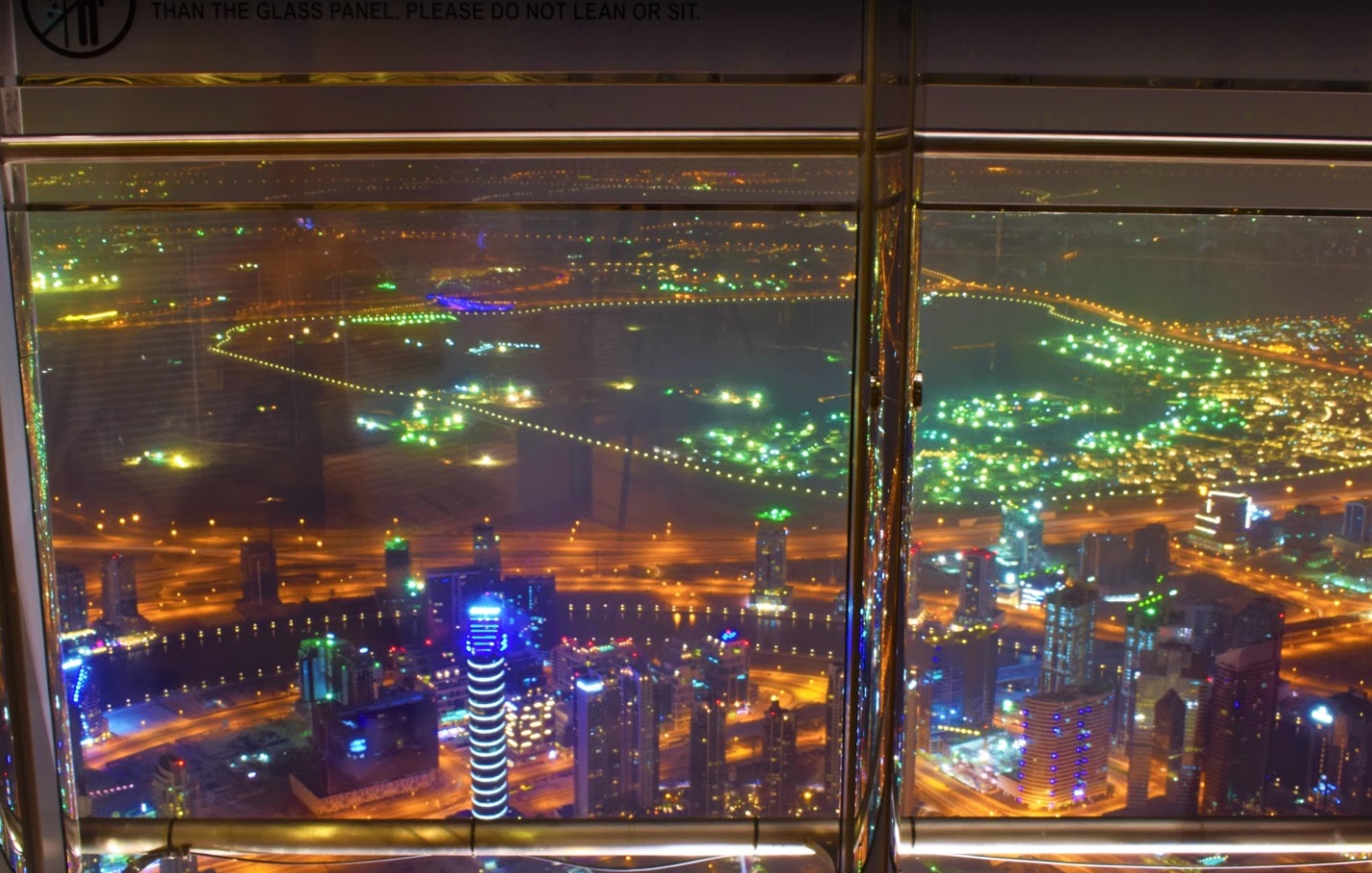 바깥을 내다볼 수 있는 전망대에서는 두바이의 아름다운 스카이라인과