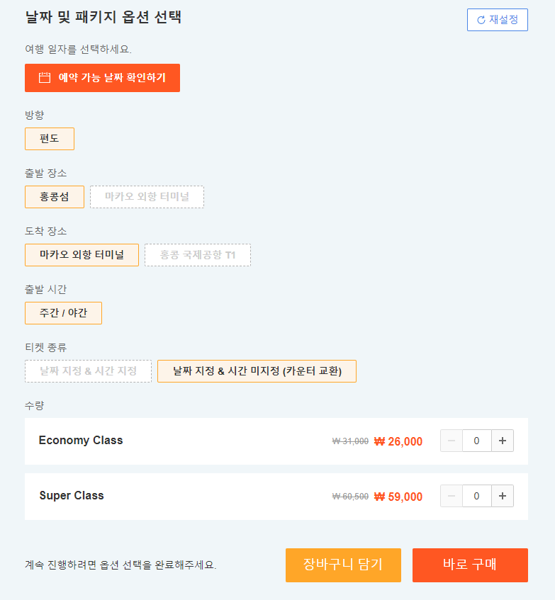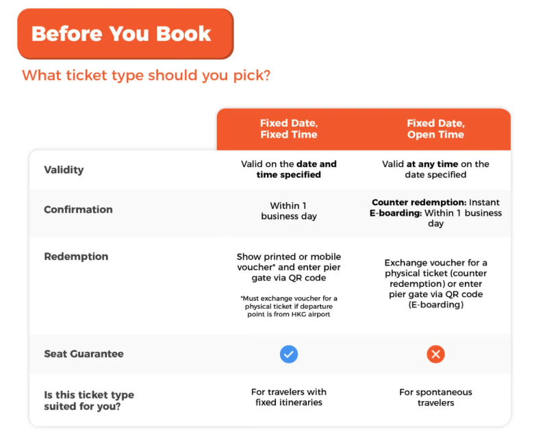 온라인으로 예약하고 홍콩섬(셩완) 또는 구룡 페리 터미널 터보젯 카운터에