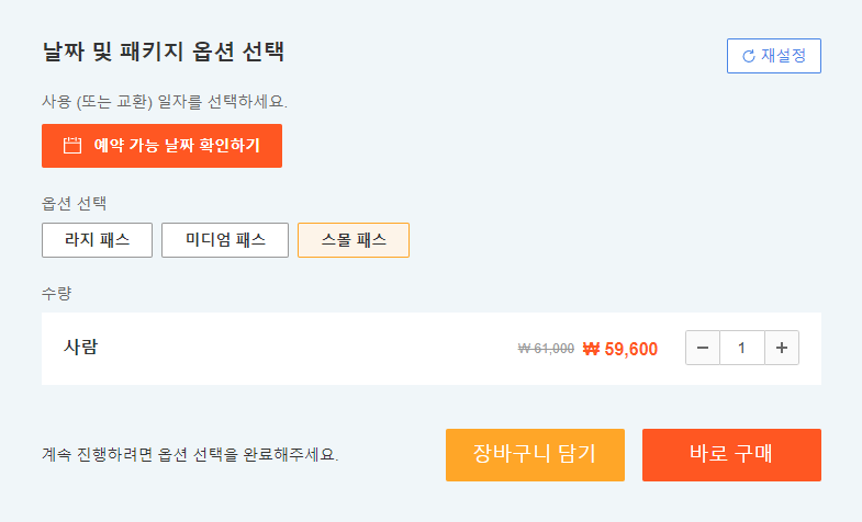 스몰 패스, 미디엄 패스, 라지 패스 모두 프리미엄 어트랙션 및