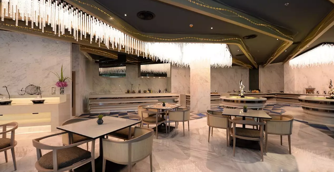 레스토랑은 전체적으로 대리석으로 장식되어 세련되면서도