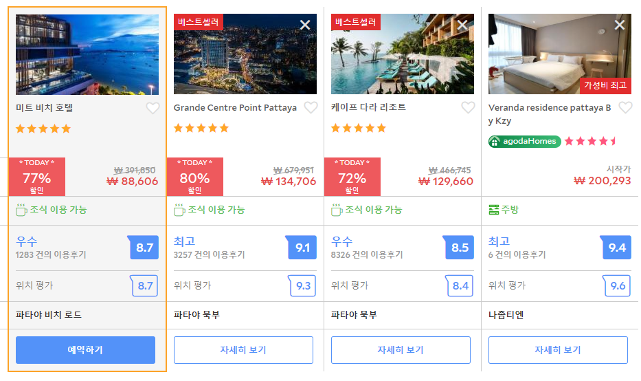 파타야 미트비치 호텔 아고다 최저가 자세히 보기