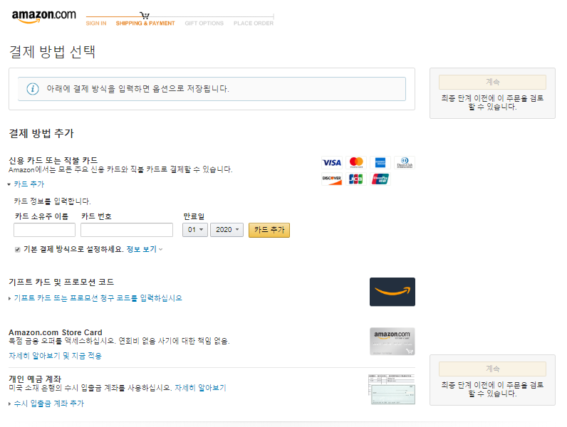 아마존사이트 회원가입 및 배송까지 셋팅이 끝났습니다.