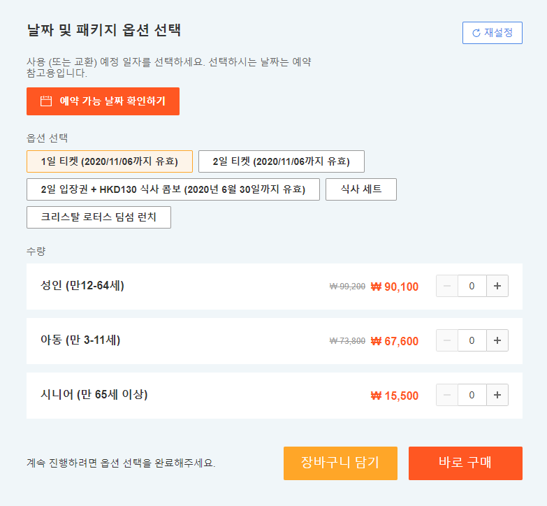 옵션내용을 확인하시고 원하는 입장권을 구매하세요 ~~~
