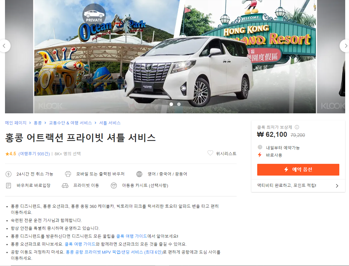 홍콩어트랙션 차량 유료서비스인 홍콩 어트랙션 셔틀 서비스 자세히 보기