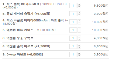 픽스 SD카드 등의 가격은 아래와 같으며,
