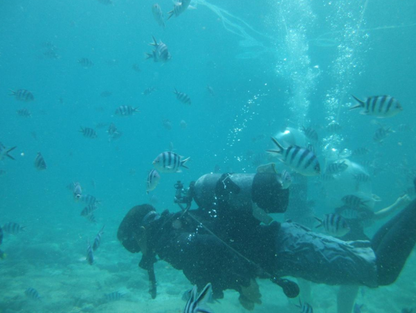 다이빙 지점까지 보트로 이동 (15분)