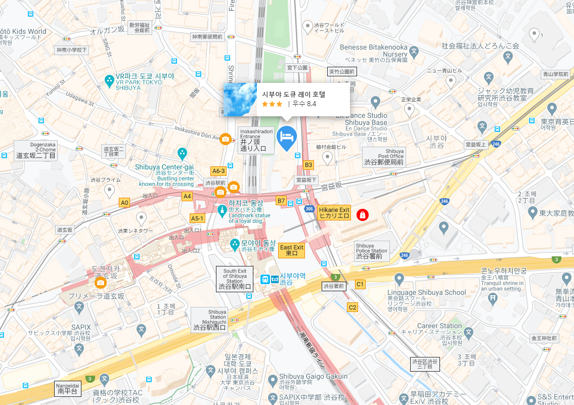본 숙소는 시부야 크로싱, 하치 스태츄, 시부야 히카리에 등과 같은