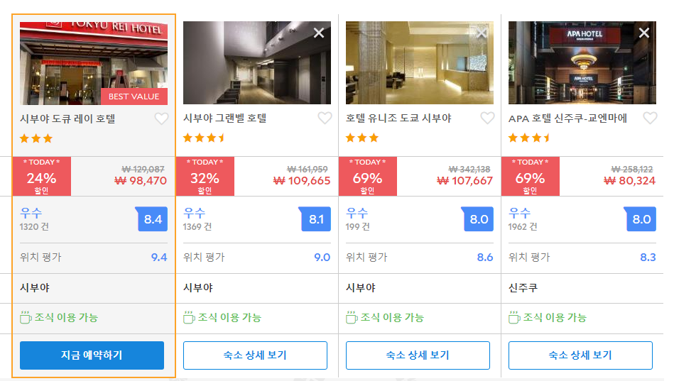 시부야 도큐 레이 호텔(Shibuya Tokyu REI Hotel)의 최저 가격대는