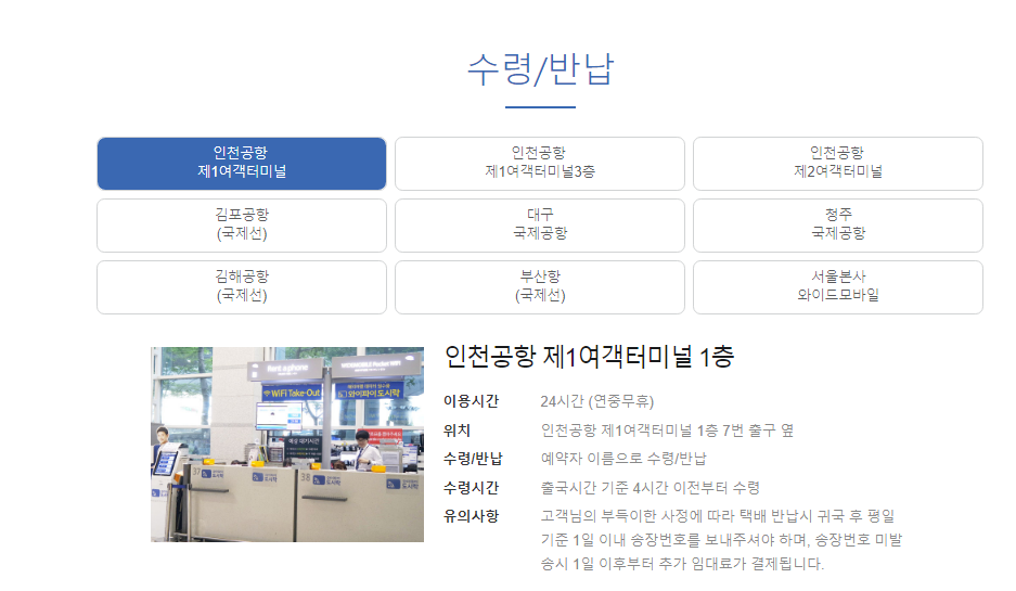 전국 국제공항 전용부스에서 임대하고 여행이 끝나면