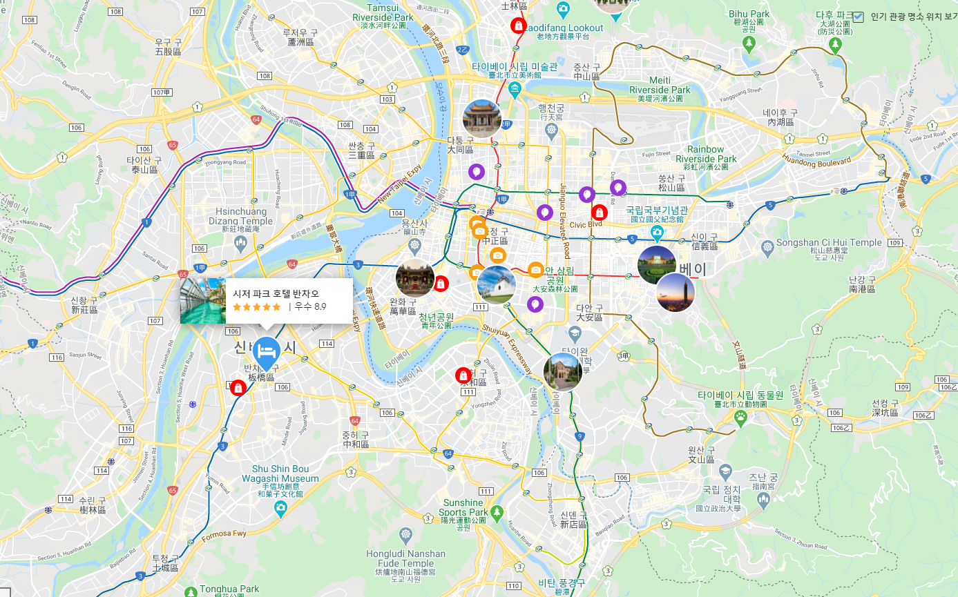 체크인할때 한국어 가능한 직원이 있어서 편했어요. 23층이였는데 전망도 좋았고 내부도 깨끗하고 좋았어요. 다음에 타이베이를 또 가게된다면 재방문의사 100%
