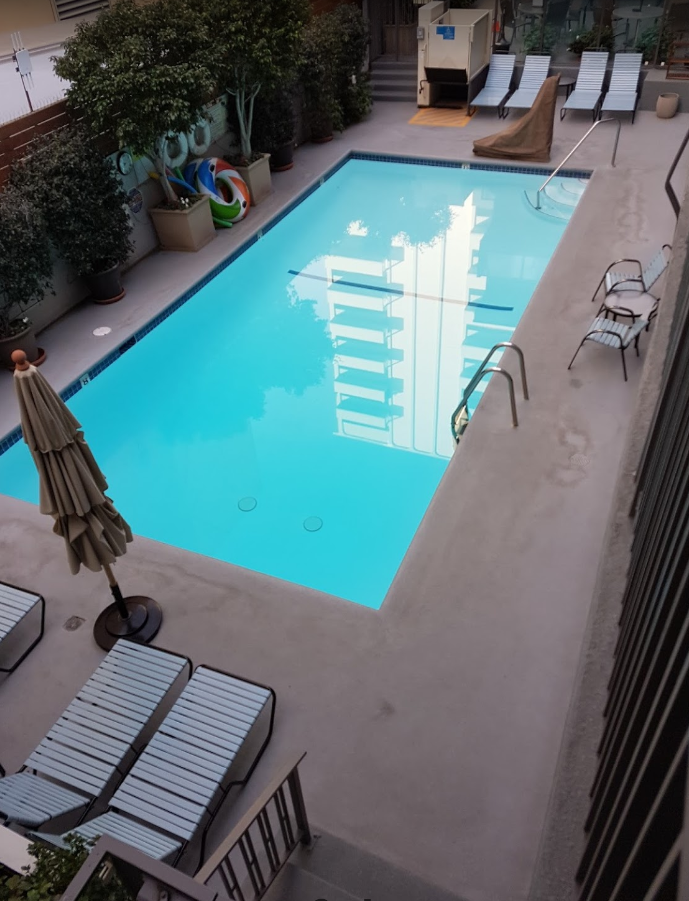 룸컨디션은 넓고, 깨끗하며 작지만 예쁜 수영장,