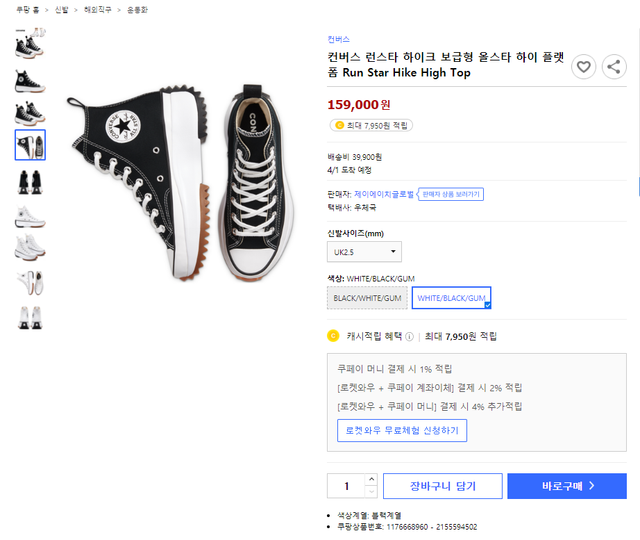 컨버스 런스타 하이크는 쿠팡에서 해외직구로 쉽고