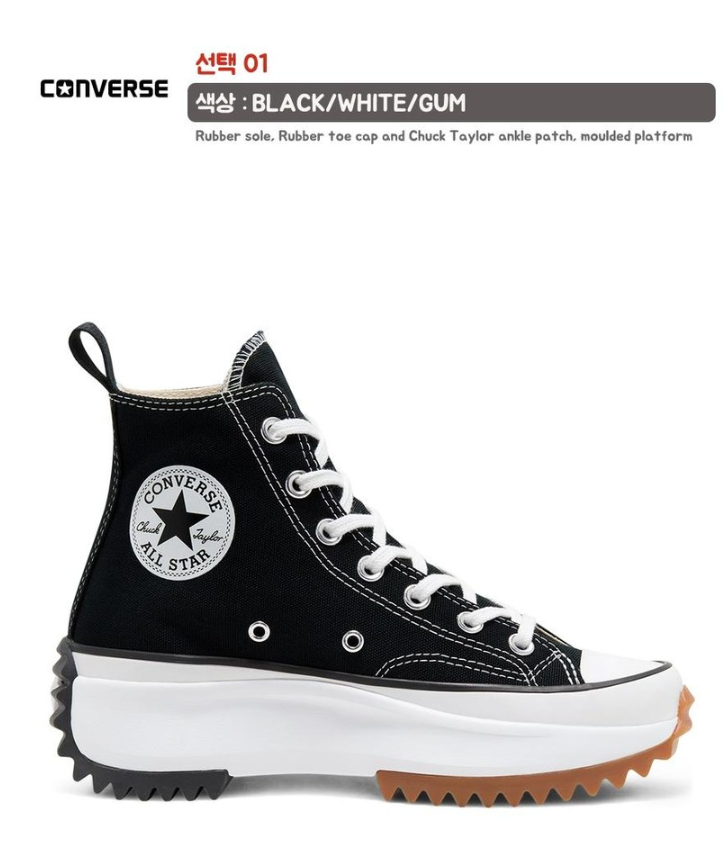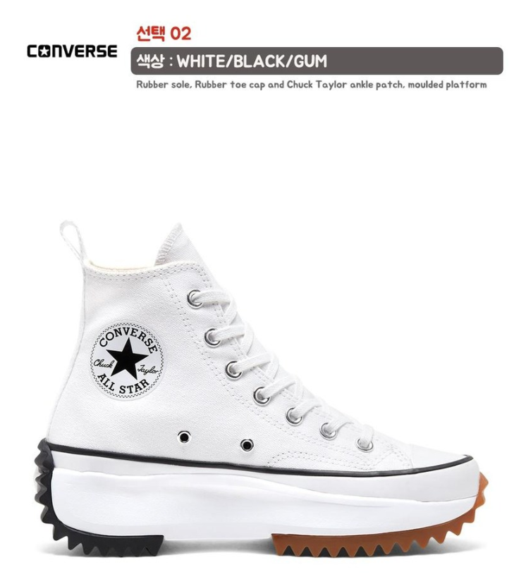 굽 높은 운동화 하이탑 컨버스 런스타 하이크 보급형 블랙 화이트 (Run Star Hike White)