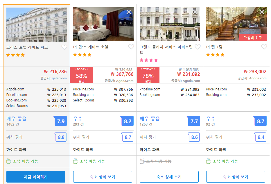 런던 하이드파크(Hyde Park)지역의 호텔추천