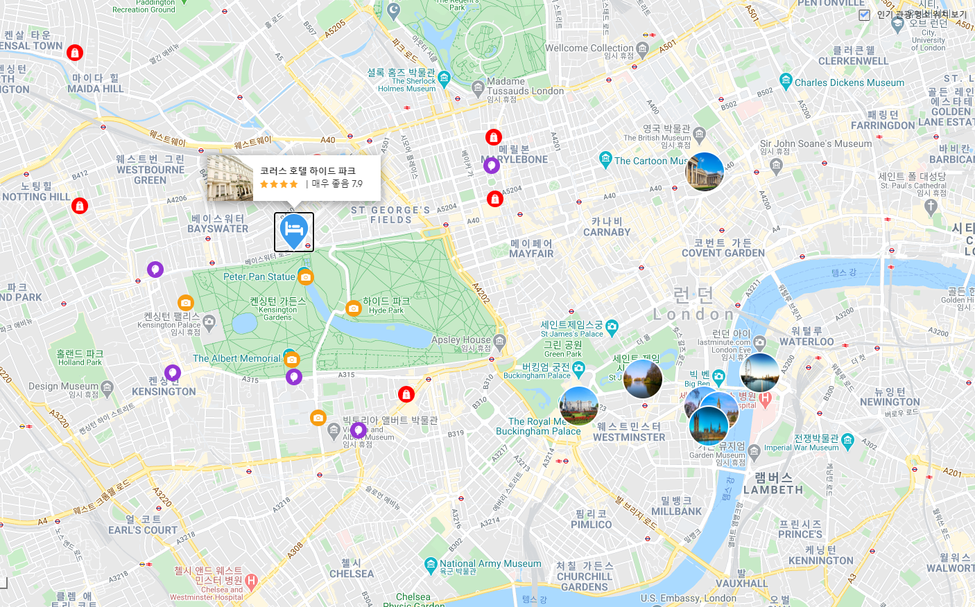 위치가 좋습니다. (하이드파크 인접, 대중교통 편리)”