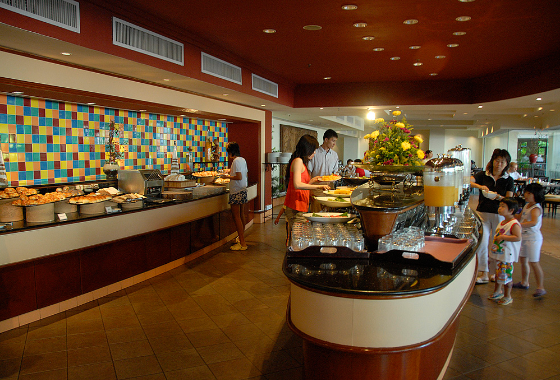 호텔내 레스토랑에서 또는 수영장의 바에서 보는
