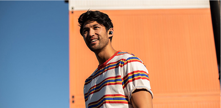 장시간 사용에도 편안한 착용감 하루 종일 편안하게 음악을 즐길 수 있습니다. IPX 4 등급의 생활방수 기능을 제공하며 인체공학적으로 설계된 이어버드는 완벽하고 안정적인 착용감을 제공합니다. 직관적인 터치 인터페이스로 음악 트랙을 제어하고 전화를 받거나 구글어시스턴트와 같은 인공지능 기능을 바로 호출할 수 있습니다.