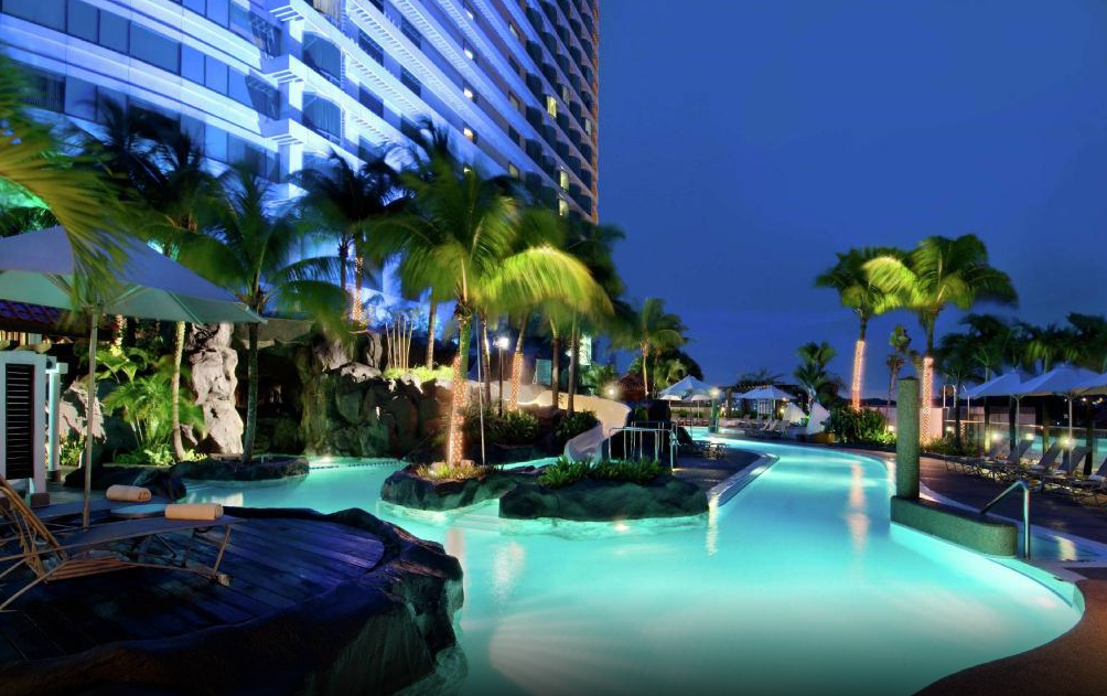 코타키나발루 국제공항과 가까우며, 쇼핑몰(이마고몰)도 바로 옆에 있어 편리한 코타키나발루 더 마젤란 수테라 리조트(The Magellan Sutera)는 규모가 무척 크며 수영장의 종류도 많아 즐기