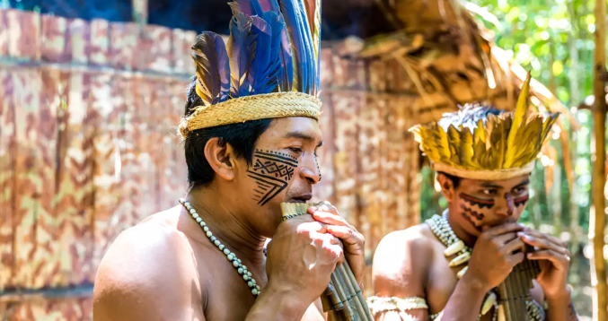 원주민들이 보여주는 전통 예술 퍼포먼스를